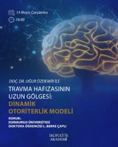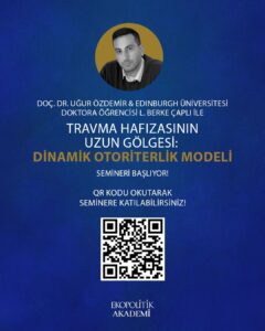 Doç. Dr. Uğur Özdemir moderatörlüğünde ve Edinburgh Üniversitesi Doktora Öğrencisi L. Berke Çaplı’nın anlatımıyla gerçekleşecek “Travma Hafızasının Uzun Gölgesi: Dinamik Otoriterlik Modeli” başlıklı bu seminerde tarihsel bellek, toplumsal güvensizlik ve otoriterliğin dinamik ilişkisini birlikte ele alacağız.